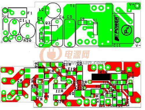 變壓器的次級(jí)由D5整流,由C11濾波。選用肖特基勢(shì)壘二極管來(lái)提高效率。由于C11在AC過(guò)零點(diǎn)期間提供能量存儲(chǔ),因此它的值決定了線電壓頻率輸出紋波的幅值(因采用全波整流而為2 x fL )。因此可根據(jù)所需的輸出紋波來(lái)調(diào)整該值。對(duì)于所顯示的680 微F值,輸出紋波為正負(fù)IO的50%。電阻R17和C10用來(lái)衰減高頻振蕩,改善傳導(dǎo)及輻射EMI。