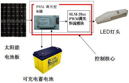 太陽(yáng)能路燈的構(gòu)成十分簡(jiǎn)單(圖1)。從圖1所示的框圖中可見,其中最核心的部件,就是PWM調(diào)光控制器和恒流模塊。