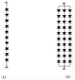 多個(gè)LED也可以采用串并聯(lián)的結(jié)構(gòu),通常我們稱之為幾串幾并。例如10串3并就是如圖9b的結(jié)構(gòu)。