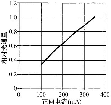 圖1 是LED 相對光通量和其正向電流IF 的關系圖。圖中可以看出LED 的光通量和其正向電流成正比的關系,因此可能通過控制LED 的正向電流來控制其發光亮度。LED 若采用恒壓源驅動,很小的電壓變化將引起很大的電流變化,因此恒壓驅動只適用于要求不高的小功率的場合下。在要求高的場合和大功率的場合下LED 都要采用恒流驅動。研究表明,LED 發光亮度隨工作時間下降,亮度下降后光效隨電流的增加而減少,LED 的亮度與驅動電流成飽和關系。LED 的電流達到其額定電流的70% ~80% 后,很大比例的電流轉化成了熱能,因此LED的驅動電流宜為工作電流額定電流的70% ~80%。在恒壓驅動或PWM 調光中, 最大電流不宜超過最小電流的3 倍,否則的話沖擊電流會大大減少LED 的使用壽命[8].目前來說市場化單個LED的功率都不大,大都在10W 以下,實際用于照明是把多個LED 按一定方或串并聯之后形成LED 陣列。