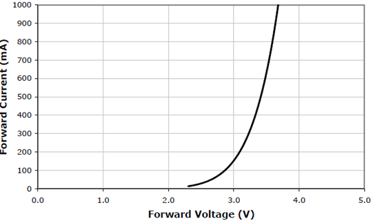 我們都知道,LED是一個(gè)二極管,而二極管最重要的電特性就是它的伏安特性。圖2中給出了Cree公司的XLamp7090XR-E的伏安特性。