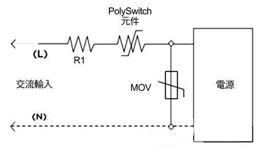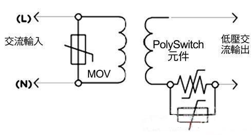 在照明系統(tǒng)中采用第二類功率源可成為降低成本、提高彈性的重要因素之一。固有的有限功率源,如變壓器、電源供應(yīng)器或電池等,可以包含保護(hù)組件,只要不依靠它們限制第二類功率源的輸出即可。非固有型的有限功率源,按照定義,具有一個(gè)分立保護(hù)組件,當(dāng)電流和能量輸出達(dá)到預(yù)定值時(shí)它會(huì)自動(dòng)中斷輸出,各種電路保護(hù)組件都有助于提供LED照明應(yīng)用第二類功率源的安全操作。圖4表示了一種協(xié)同保護(hù)策略的工作原理,它在交流輸入上采用了一個(gè)MOV,在輸出電路分支上采用了一個(gè)PolySwitch組件,可以幫助廠商滿足UL 1310第35.1小節(jié)針對(duì)開關(guān)和控制裝置的過載試驗(yàn)要求。