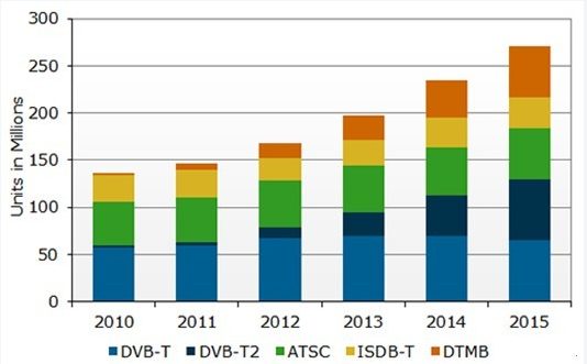 - 2015年DVB-T2地面數字電視出貨量將達6千4百70萬臺