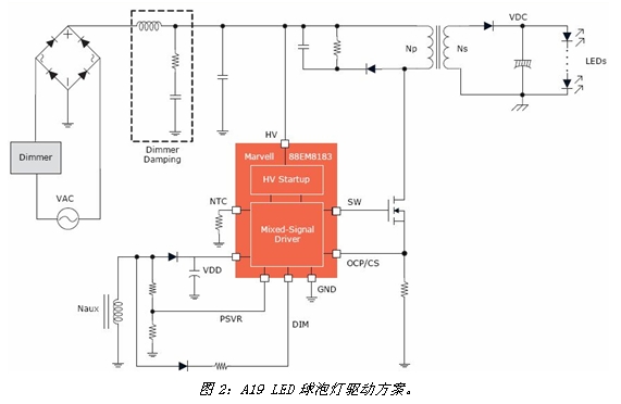 消費(fèi)者用LED節(jié)能燈取代白熾燈等傳統(tǒng)照明解決方案的同時(shí),也希望得到同樣或更好的照明體驗(yàn)。不幸的是,他們常常發(fā)現(xiàn)LED燈在調(diào)光能力上有問題,因此覺得LED燈幾乎不能調(diào)光或調(diào)光時(shí)會(huì)閃爍。很多LED燈與家中已安裝的壁式調(diào)光器也不兼容。Marvell最新的88EM8183深度調(diào)光單級交流/直流LED驅(qū)動(dòng)器IC為OEM廠商和ODM廠商提供了兼容性最廣泛的調(diào)光解決方案,該IC與全球市場上絕大多數(shù)調(diào)光器都兼容,而且提供卓越的光輸出質(zhì)量,可提高消費(fèi)者的滿意度,減少退貨。
