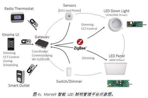Marvell智能 LED照明管理平臺提供了完全集成的LED照明和無線控制系統(tǒng),因此不論是易用性的提升還是安裝成本的降低都趨向于極致,大大簡化了使用和維護(hù)難度,使得非專業(yè)人員也能輕松應(yīng)對。該平臺的一大特色是允許終端用戶可以使用智能手機(jī)和平板電腦方案,使他們可以方便地從任何地方管理、分析并維護(hù)一個(gè)更具性價(jià)比的數(shù)字照明方案。