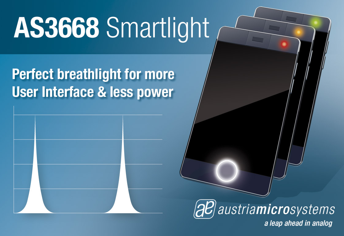 全球領(lǐng)先的高性能模擬IC設(shè)計(jì)者及制造商奧地利微電子公司(SIX股票代碼:AMS)宣布推出新款智能LED驅(qū)動(dòng)芯片AS3668。新品最多可控制4個(gè)LED,為手機(jī)和平板電腦帶來精致的指示燈光效,且無需動(dòng)用耗電顯著的基帶處理器。