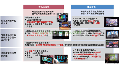 2012年,SMD和LG顯示器計劃量產電視用55英寸面板,友達光電(AUO)和奇美電子(CMI)計劃量產智能手機用中小型面板。日本廠商中,日本顯示器正在以2013年量產為目標。索尼和松下也將共同開發(fā)大尺寸面板。隨著各競爭公司紛紛表明涉足,“如果美國蘋果等大客戶有需求,夏普應該也不會拒絕”(顯示器相關分析師)。