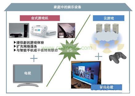 游戲機除了提供新的游戲體驗之外,還打算通過擴充網絡服務并進一步與智能手機及平板終端聯動,來增加用戶使用的機會。而智能電視則支持云計算型游戲發送服務,開始具有游戲機功能。