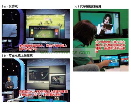 通過Xbox 360收看視頻時,也可利用平板終端或智能手機。外出時使用平板終端收看的視頻,回家后利用連接到Xbox 360的電視可繼續觀看。據稱,通過使用無線LAN等,使Xbox360與便攜終端實現了聯動。