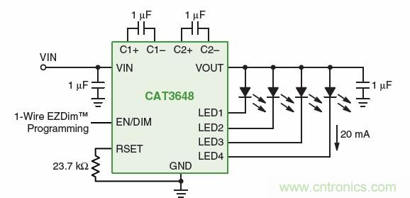 針對手機等便攜設(shè)備的LCD背光應(yīng)用,安森美半導(dǎo)體提供多款簡單線性白光LED驅(qū)動器。它采用單線式EZDim接口調(diào)光,有32級調(diào)光控制;25 mA固定電流(B版本)或可調(diào)節(jié)電流(A版本)。這些單模LED驅(qū)動器可作為系統(tǒng)級的一部分,用于設(shè)計整合低電壓LED和簡單LED驅(qū)動器的背光電路。