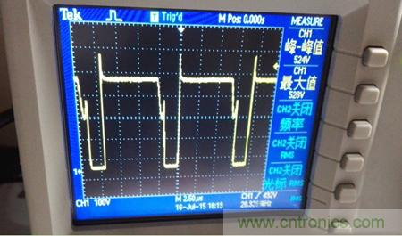6、功率開關管采用TO-220塑封12N65的場效應管ID太大12A。一方面提高了成本,造成浪費;另外一方面因為開關管的結電容太大Ciss為2290PF,會造成驅動不足的現象反而會影響驅動轉換效率,實際測量開關管最高峰值電壓才524V。因此建議設計開關管用5N60或者7N60的MOS管。