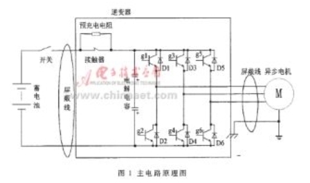 電機及其驅動系統是HEV的關鍵部件。首先,其高可靠性必須能夠保證HEV長期可靠工作;其次,系統效率對HEV的能耗水平具有決定影響。現在得到大規模應用的有基于永磁電機和感應電機的變頻調速系統(以下簡稱逆變器)。基于永磁電機的逆變器,以日立、川崎等日本公司的產品最為成熟;基于異步電機的逆變器,ABB、SIEMENS、ALSTON等歐洲著名公司都能夠提供不同功率等級的應用系統。在電力機車市場方面,產品應用和發展趨勢也是一致的。本文研究的是基于異步電機的逆變器,配套電機為湘電股份公司生產的YQ57型變頻牽引異步電動機,應用于湘電股份公司的XD6120型HEV客車上。