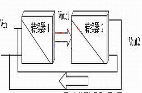 要實(shí)現(xiàn)節(jié)能循環(huán)利用,主要考慮將消耗在電阻負(fù)載上的能量更加合理的利用。如果能將輸出電壓Vout再還原為輸入電壓Vin,則輸出電能轉(zhuǎn)換為輸入的電能,便可以實(shí)現(xiàn)電能的循環(huán)利用,如圖2所示:將原有轉(zhuǎn)換器的電阻負(fù)載R1用等效輸入阻抗的轉(zhuǎn)換器2取代,轉(zhuǎn)換器2的輸出接轉(zhuǎn)換器1的輸入。則與R1等效輸入阻抗的轉(zhuǎn)換器2從轉(zhuǎn)換器1輸出端消耗的能量被轉(zhuǎn)換到轉(zhuǎn)換器1的輸入端,再經(jīng)轉(zhuǎn)換器1又到轉(zhuǎn)換器2的輸入端,實(shí)現(xiàn)了能量的循環(huán)利用。如果在理想情況下,沒(méi)有轉(zhuǎn)換損耗,則系統(tǒng)可以自循環(huán)工作。當(dāng)然這是無(wú)法實(shí)現(xiàn)的,所以在能量分析時(shí),要引入轉(zhuǎn)換過(guò)程的消耗。