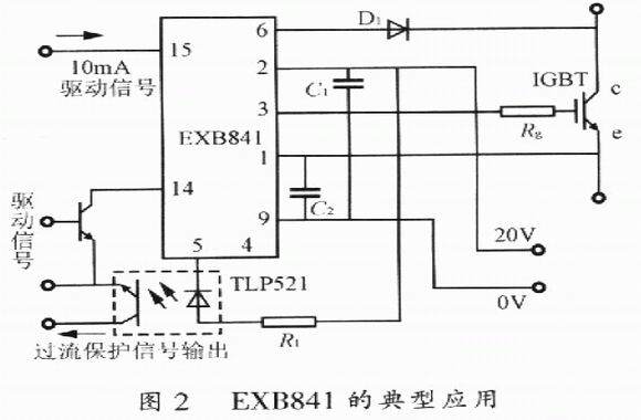 (2)EXB84l外周電路簡單,僅需單電源供電,是最早進入我國市場的ICBT驅動模塊,技術成熟,應用廣泛;