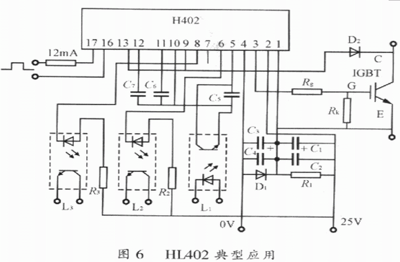 HL402是17腳單列直插式結構,內置有靜電屏蔽層的高速光耦合器實現信號隔離,抗干擾能力強,響應速度快,隔離電壓高。它具有對IGBT進行降柵壓、軟關斷雙重保護功能,在軟關斷及降柵壓的同時能輸出報警信號,實現封鎖脈沖或分斷主回路的保護。它輸出驅動電壓幅值高,正向驅動電壓可達15~17V,負向偏置電壓可達10~12V,因而可用來直接驅動容量為400A/600V及300A/1200V以下的IGBT。