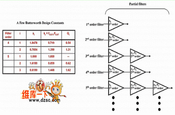 圖1通過級聯(lián)一階和/或二階濾波器您可以構建一款多階模擬濾波器。您可以利用濾波器系數(shù)計算出放大器所需的帶寬