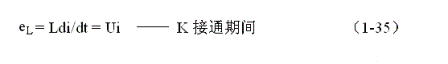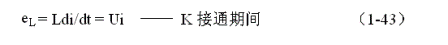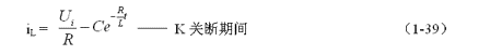式中負(fù)號表示反電動勢eL的極性與(1-35)式中的符號相反,即:K接通與關(guān)斷時電感的反電動勢的極性正好相反。對(1-38)式階微分方程求解得: