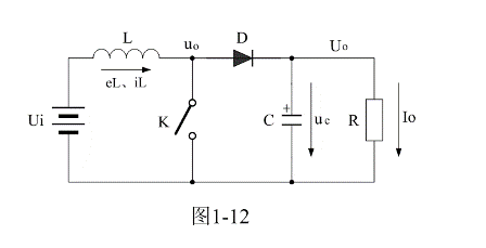 當(dāng)控制開關(guān)K接通時,輸入電源Ui開始對儲能電感L加電,流過儲能電感L的電流開始增加,同時電流在儲能電感中也要產(chǎn)生磁場;當(dāng)控制開關(guān)K由接通轉(zhuǎn)為關(guān)斷的時候,儲能電感會產(chǎn)生反電動勢,反電動勢產(chǎn)生電流的方向與原來電流的方向相同,因此,在負(fù)載上會產(chǎn)生很高的電壓。