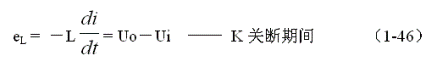 式中負(fù)號表示反電動勢eL的極性與(1-43)式相反,即:K接通與關(guān)斷時電感的反電動勢的極性正好相反。對(1-46)式進行積分得: