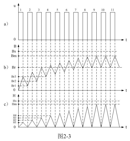 在圖2-1中,當有直流脈沖電壓輸入變壓器初級線圈a、b兩端時,在變壓器初級線圈中就有勵磁電流流過,勵磁電流會在變壓器鐵芯中產生磁通
