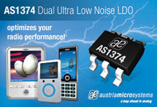 奧地利微電子消費及通信部門市場總監BruceUlrich表示:“AS1374雙路低壓差穩壓器,是RF、手機相機、無線基站和PA偏置電源等需要低噪聲電源供電的理想選擇。它在基于射頻的設計中所展現的優越性能為工程師提供了所需的充分設計裕量,同時保持了整個系統的完整性。AS1374可提供低壓差及低靜態電流,這款雙路超低電壓噪聲LDO理想適用于任何電池供電設備,并擴充了我們超低噪聲LDO產品線。”
