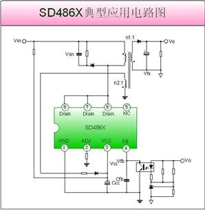 SD486X系列芯片基于士蘭微電子自主研發的BCD工藝制造,采用了DIP-8的封裝形式,并內置了高壓功率MOS系列晶體管,因此,SD486X系列產品具有集成度高、占板面積小、便于整機調試等突出的特點。相對于采用分立的控制芯片和功率MOSFET的應用方案來說,不僅降低了綜合成本,而且大幅度提高了芯片的可靠性。