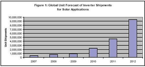 - 2012年全球用于太陽能系統的逆變器出貨量將從2008年時的723,329個增長到950萬個