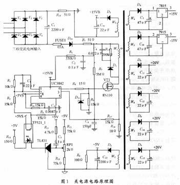 本文介紹了一種基于專用芯片UC3842的開關穩壓電源。在電機調速控制器中,該電源提供功率開關元件基極(柵極)驅動電壓和控制電路工作電壓。開關電源性能的好壞直接影響到電機調速控制器的工作可靠性。該電源是為30 kW開關磁阻電機控制器設計的,也適用于采用功率MOSFET或IGBT作為開關元件的中小功率感應電機調速控制器。