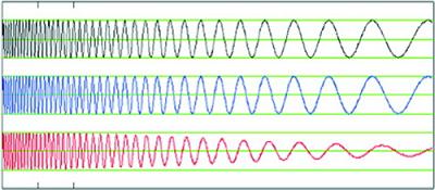 去掉隔直電容除了能夠消除爆破音,另一個(gè)好處是耳機(jī)低頻輸出也得到了很大的改善,圖5所示為一個(gè)掃頻信號(hào)經(jīng)過(guò)內(nèi)部產(chǎn)生負(fù)電源的耳機(jī)驅(qū)動(dòng)器后的波形和經(jīng)過(guò)隔直電容后的波形對(duì)比。