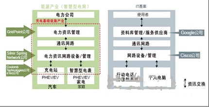 IT產(chǎn)業(yè)和智能電網(wǎng)能源產(chǎn)業(yè)在處理數(shù)據(jù)上展現(xiàn)了結構上的相似性。美國新興公司希望將Google和Cisco在IT的成功模式沿用在充電基礎設施中。
