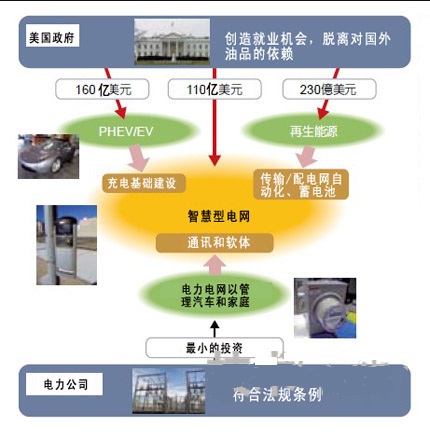 美國在構建智能電網(wǎng)的同時,還將一舉建設充電基礎設施。許多企業(yè)為獲得這一市場而參與了競爭,他們的目標是,以電力資訊為核心推出新的服務,以成為汽車和家電產(chǎn)業(yè)的主角為目標。