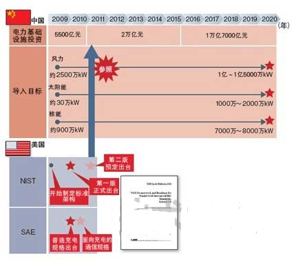 美國加緊推進標準化是因為瞄準了中國將在2011年以后向電力基礎(chǔ)設(shè)施投入的巨大投資。圖中中國的數(shù)據(jù)由海外電力調(diào)查會提供。