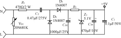 輸入電路的電阻R1(或R1、R2)要采用品質較好的金屬膜電阻或水泥電阻,功率2~5W,阻值100~820Ω;降壓電容C2(或C5)采用高質量的高壓金屬化聚丙烯電容,一般0.22~0.47μF,耐壓應≥AC250V,電容的容量過大會引起視在功率超標。