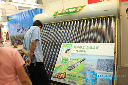 作為目前無污染、清潔能源技術的太陽能應用產品,皇明、桑普等太陽能熱水器企業也在本屆展覽會上閃亮登場。