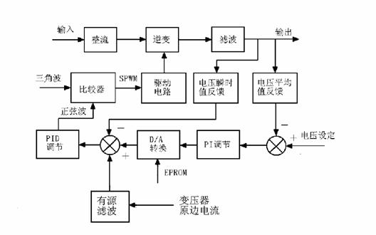 由于在輸出變壓器中,勵磁電流一般僅占原邊電流的2%,因此原邊電流直流分量的檢測必須首先濾除勵磁電流中的基波及高頻成分,然后再將剩下的直流分量放大后用于控制。勵磁電流中直流分量的提取可先由霍爾電流傳感器檢測變壓器的原邊電流,再經有源濾波,最后送到PID調節器中,其雙閉環控制原理框圖為如圖3所示。