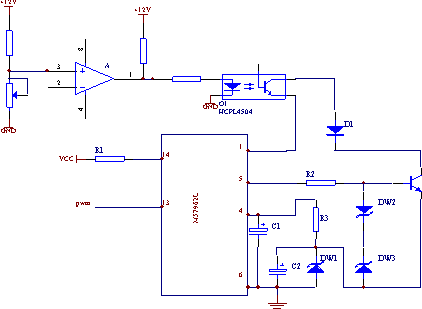 比較器A的第二腳接變壓器原邊電流轉換的電壓值,O1為快速光電耦合器HCPL4504,其輸出三極管與快恢復二極管相串聯,當變壓器原邊電流沒有超過設定的閾值時,無集中過流信號,此時光耦的輸入側二極管處于導通狀態,在分散過流檢測通道中串入的光耦不會影響分散過流保護功能,當變壓器原邊電流超過設定的閾值時,產生集中過流信號,此時光耦的輸入側二極管迅速關斷,快速光耦的輸出側三極管迅速關斷,M57962的1腳將懸空,此時IGBT如果仍處于導通狀態,則驅動模塊內部的過流保護電路就會動作,對IGBT實施軟關斷保護。這樣,不論分散過流保護,還是集中過流保護,都能對IGBT實施軟關斷保護,防止過大的關斷電壓對IGBT造成損壞。