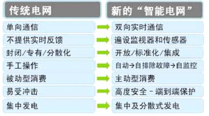 表1:傳統電網與新的智能電網之間的簡單對比。