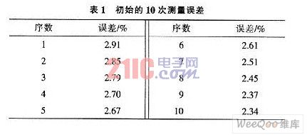 以200W的小型離網(wǎng)光伏系統(tǒng)為例,額定電壓24V,最大電流6.18A,蓄電池200Ah。設(shè)計(jì)正常放電時(shí)間為2~3d,0~6.18A的電流按比例轉(zhuǎn)換為0~5V的電壓,由2只電阻構(gòu)成的衰減器,輸出電壓放大比例由電阻R1和R2的比值決定,設(shè)定U/U轉(zhuǎn)換比例為5/24,則R7=10kΩ,R6+Rp2=48kΩ。根據(jù)電量計(jì)算公式Q=UIT,實(shí)驗(yàn)時(shí)間為中午12時(shí)至下午2時(shí),從顯示電量開始,每隔3min記錄一次實(shí)際功率和監(jiān)控系統(tǒng)所顯示的數(shù)據(jù),各次誤差均小于3%,表l給出初始的10次測(cè)量誤差情況,隨電量逐漸增大,誤差變化范圍逐漸縮小。
