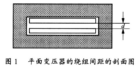 在平面型變壓器里,其“繞組”是做在印制電路板上的扁平傳導導線或是直接用銅泊。扁平的幾何形狀降低了開關頻率較高時趨膚效應的損耗,也就是渦流損耗。因此,能最有效地利用銅導體的表面導電性能,效率要比傳統變壓器高得多。圖1給出了一個平面變壓器的剖面圖,并且利用兩層繞組間距離的不同,而獲得在不同間隙下的漏感和交流阻抗值。