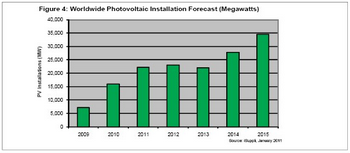 此外,預(yù)計2011年西班牙、法國和捷克的PV市場不會擴張,這些國家正在推行嚴(yán)格的措施來限制其國內(nèi)的太陽能投資熱潮。