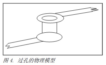 接地層確定后,將所有的信號地以最短的路徑連接到地層,通常用過孔將頂層的地線連接到地層,需要注意的是,過孔呈現為感性。過孔的物理模型如圖4所示。圖5所示為過孔精確的電氣特性模型,其中Lvia為過孔電感,Cvia為 過孔PCB焊盤的寄生電容。如果采用這里所討論的地線布局技術,可以忽略寄生電容。一個1.6mm深、孔徑為0.2mm的過孔具有大約0.75nH的電 感,在2.5GHz/5.0GHz WLAN波段的等效電抗大約為12Ω/24Ω。因此,一個接地過孔并不能夠為RF信號提供真正的接地,對于高品質的電路板設計,應該在RF電路部分提供盡 可能多的接地過孔,特別是對于通用的IC封裝中的裸露接地焊盤。不良的接地還會在接收前端或功率放大器部分產生輻射,降低增益和噪聲系數指標。還需注意的 是,接地焊盤的不良焊接會引發同樣的問題。除此之外,功率放大器的功耗也需要多個連接地層的過孔。