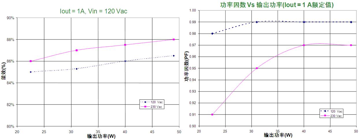 這90 W恒壓恒流演示板接受90至265 Vac的擴(kuò)展通用輸入電壓(更換元件條件下可支持305 Vac),提供0.7 A至1.5 A的恒定電流輸出范圍(可通過(guò)微幅調(diào)節(jié)電阻來(lái)選擇)及30 V至55 V的恒定輸出電壓范圍(可通過(guò)電阻分壓器來(lái)選擇),最大輸出功率90 W,支持50至1,000 Hz調(diào)光控制,并包含可連接至可選調(diào)光卡的6引腳接口,用于模擬電流調(diào)節(jié)/雙亮度等級(jí)數(shù)字調(diào)光等智能調(diào)光應(yīng)用。此外,這演示板還提供短路保護(hù)、開(kāi)路保護(hù)、過(guò)溫保護(hù)、過(guò)流保護(hù)及過(guò)壓保護(hù)等豐富保護(hù)特性。測(cè)試顯示,這演示板在50 W輸出功率、1,000 mA輸出電壓/48 V正向壓降條件的能效高于87%(詳見(jiàn)表1),在50%至100%負(fù)載條件下功率因數(shù)高于0.9,同時(shí)符合IEC61000-3-2 C類(lèi)設(shè)備諧波含量標(biāo)準(zhǔn)。
