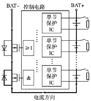 系統中控制電路部分單節鋰電池保護芯片的充電過電壓保護控制信號經光耦隔離后并聯輸出,為主電路中充電開關器件的導通提供柵極電壓;如某一節或幾節鋰電池在充電過程中先進入過電壓保護狀態,則由過電壓保護信號控制并聯在單節鋰電池正負極兩端的分流放電支路放電,同時將串接在充電回路中的對應單體鋰電池斷離出充電回路。
