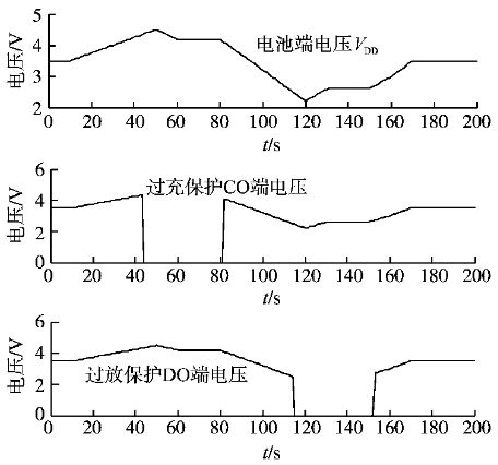 仿真模型中受控電壓源的給定信號在波形大體一致的前提下可有微小差別,以代表電池個體充放電的差異。圖6為電池組中單節電池電壓檢測仿真結果,可見采用過流放電支路均充的辦法,該電路可正常工作。