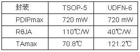 需要注意的是,NCP1529同時提供TSOP-5和µDFN-6封裝,我們可以快速地確定每種封裝選擇對工作性能的影響。表1歸納了各種封裝的功率耗散、封裝熱阻抗和計算出的最高環境溫度。