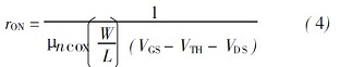 工作在線性區的MOS 管, 其導通電阻rON可由下式得出:
