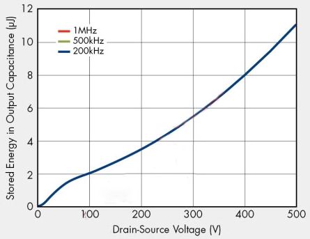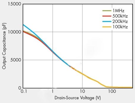 過去,許多設計人員都使用粗略假設來提供等效輸出電容值,因為輸出電容通常都指定為25V漏源電壓。不過,傳統(tǒng)的等效輸出電容值在實際應用中卻沒有多大幫助,因為它隨漏源電壓變化,并且在開關導通/關斷期間不能提供準確的儲能信息。在功率轉(zhuǎn)換器工作電壓下,新定義的輸出電容提供等效的儲能,能夠?qū)崿F(xiàn)更優(yōu)化的功率轉(zhuǎn)換器設計。