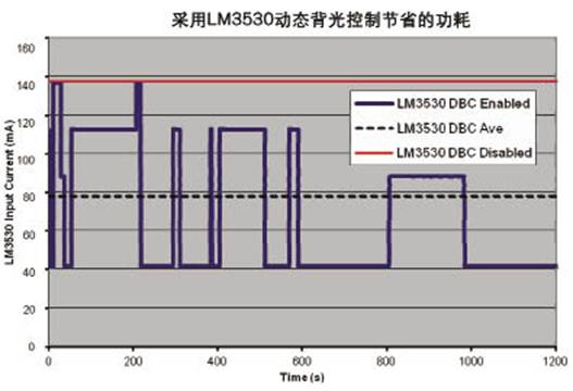 圖4 采用LM3530動(dòng)態(tài)背光控制節(jié)省的功耗