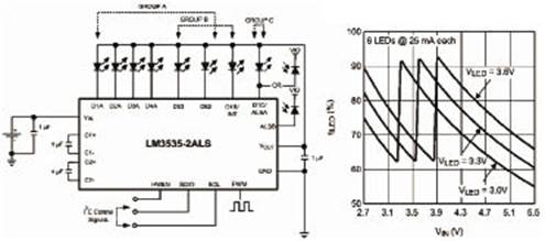 圖3 25mA條件下LM3535控制6個(gè)LED