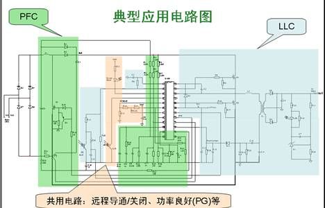 圖1是采用NCP1910的典型應用電路圖共用電路,它包括遠程PFC段、LLC段,以及實現導通/關閉、功率良好(PG)等的共用電路。